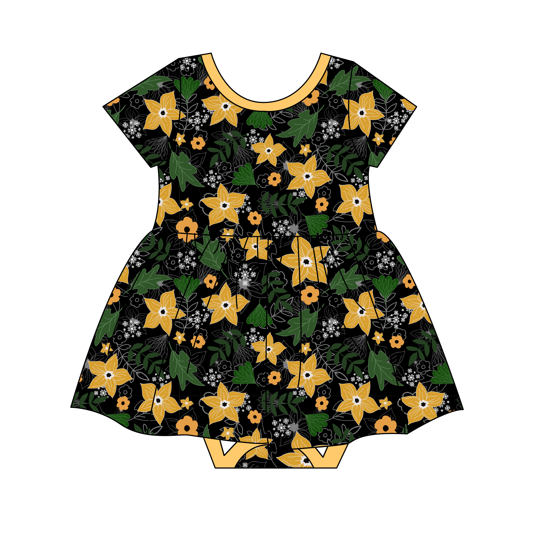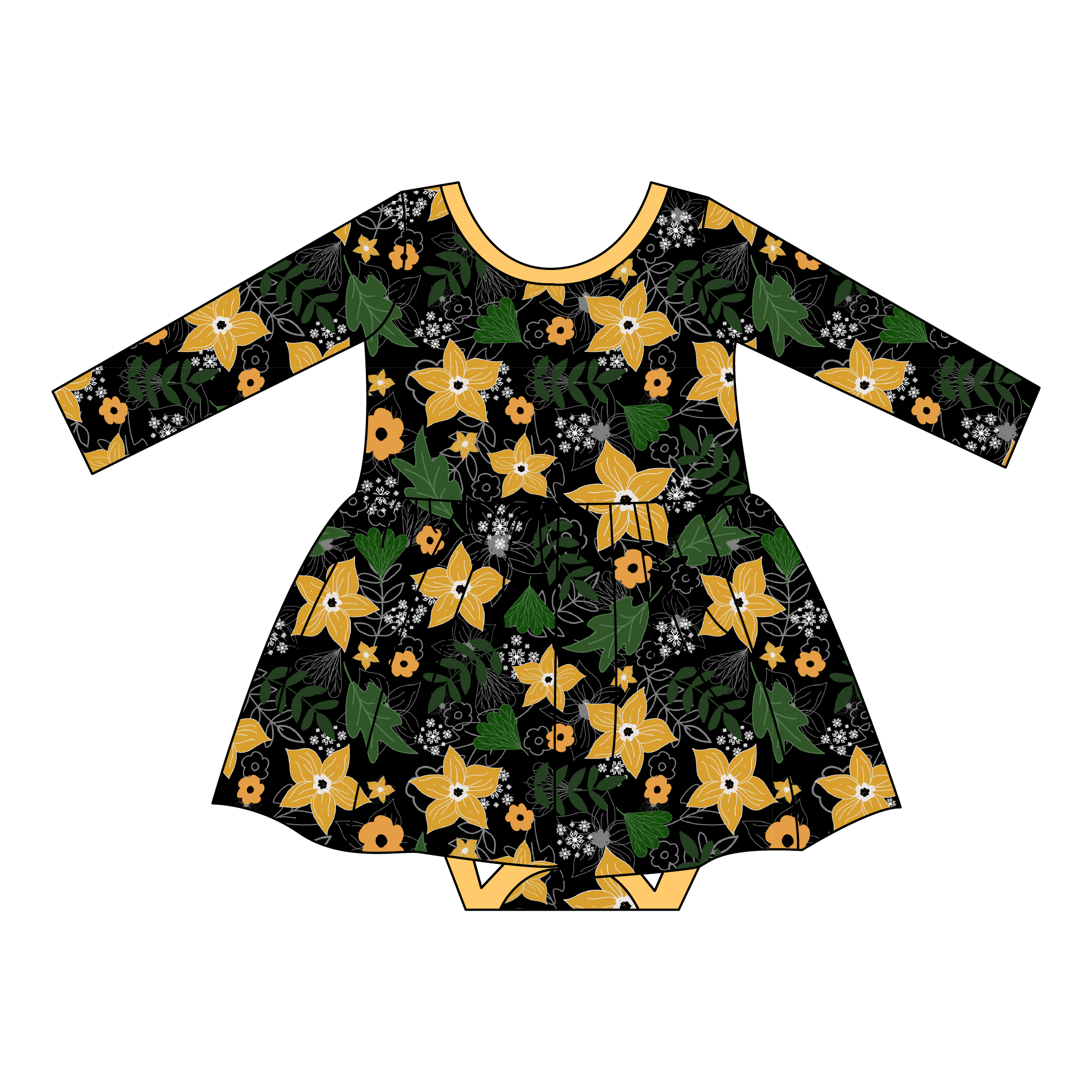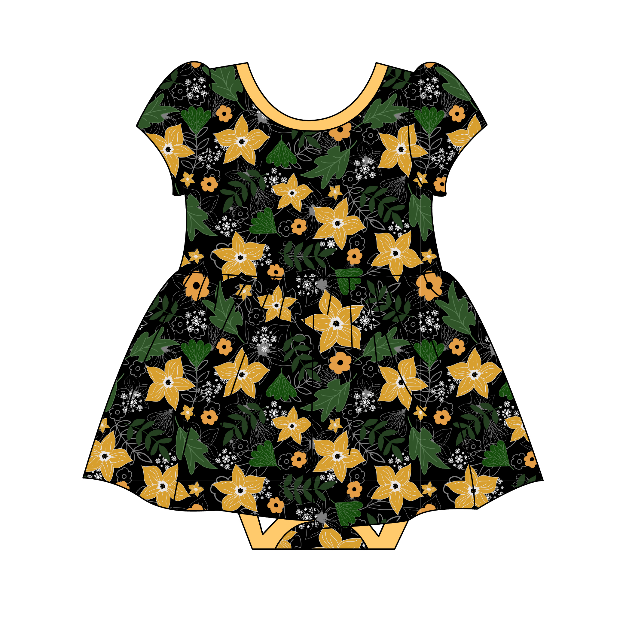 Christmas Organic Bamboo Baby Girl Twirl Dress Printing Pattern Snap Button Sweet Sis Romper Bodysuit Onesie Skirt Toddler Dress