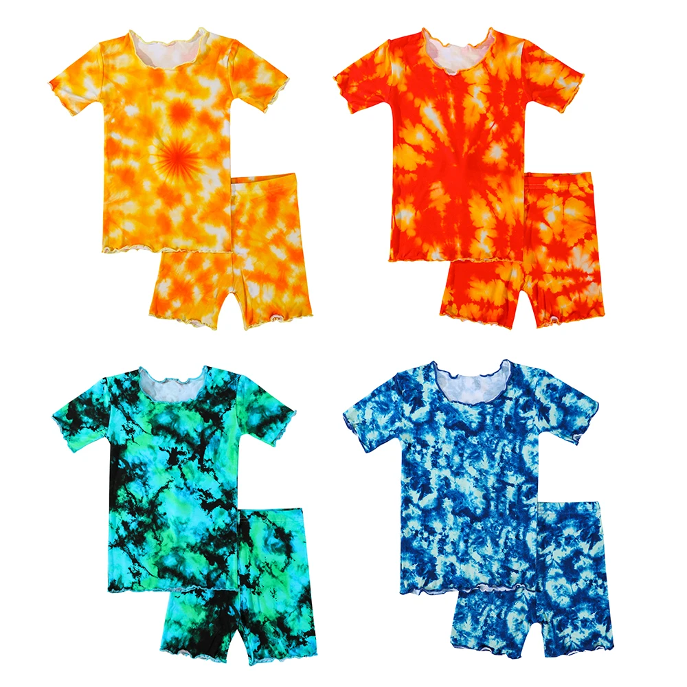 Custom 95% Bamboo 5% Spandex Kids Sleepwear Junior Soft Bamboo Baby Pajamas Set Tie Dye Short Summer Pjs 2pcs Set