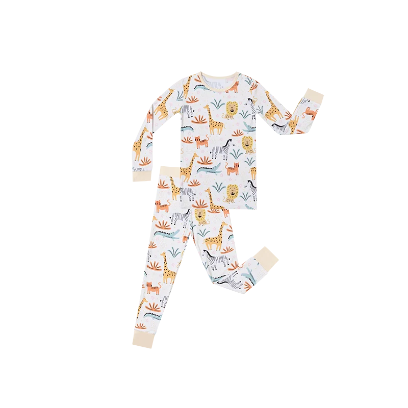 Custom Baby Bamboo Pajamas 2 Piece Set Long Sleeve Pants Kids Toddler Children Pjs Bodysuit Children Sleepwear Outfit Sets