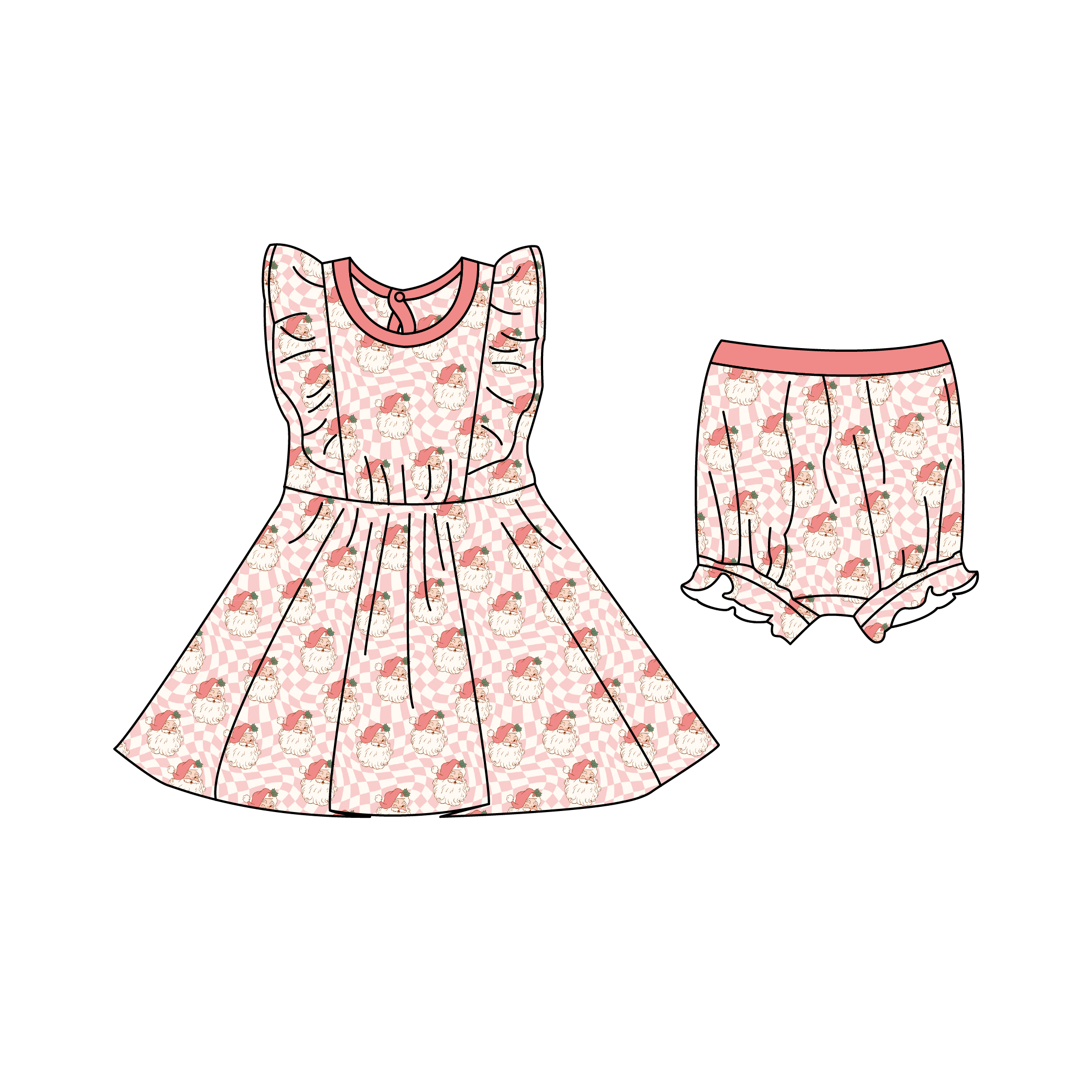 Custom Baby Girls pink Color Dress Set Flutter Sleeves Two Piece Casual Knit Ribbed Summer Children Girls Dresses and Bloomer - Image 6