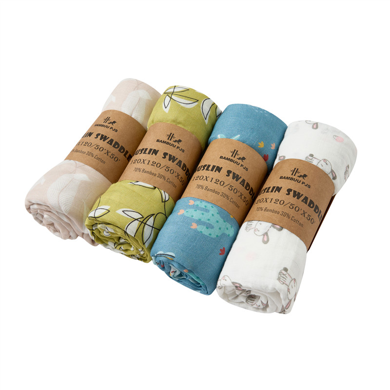 Custom Design 70% Bamboo 30% Cotton Soft Newborn Baby Infant Muslin Bamboo Cotton Swaddle Receiving Blanket Wraps for Baby