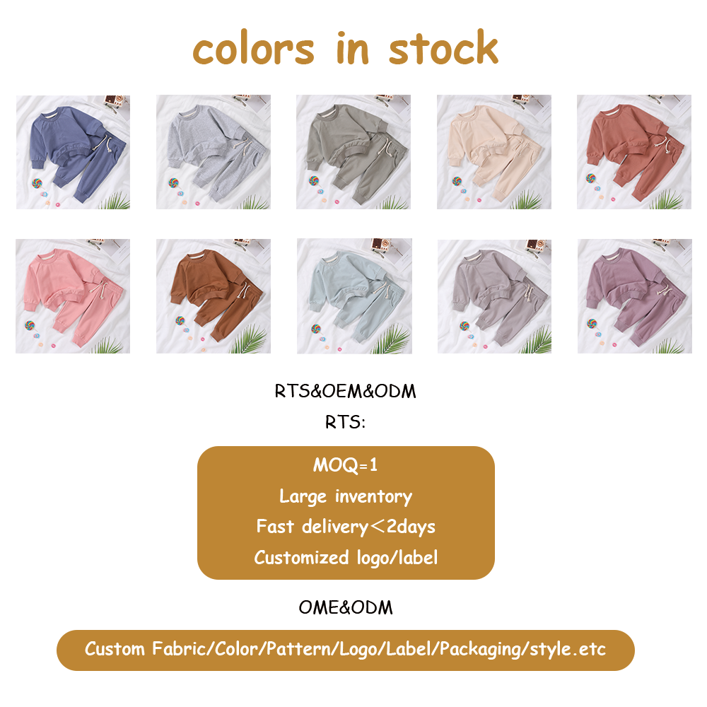Custom Organic Bamboo Toddler Solid Tracksuit Set Baby Long Sleeved Sweatshirt O-neck Pullover Kids Jogger Sets Hoddie Winter