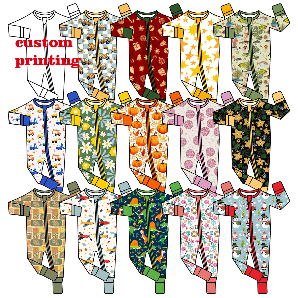 • Custom Printed Baby Kid Children Zipper Romper Bamboo Spandex Fabric Jumpsuit Pjs Romper Sleepwear Onesie