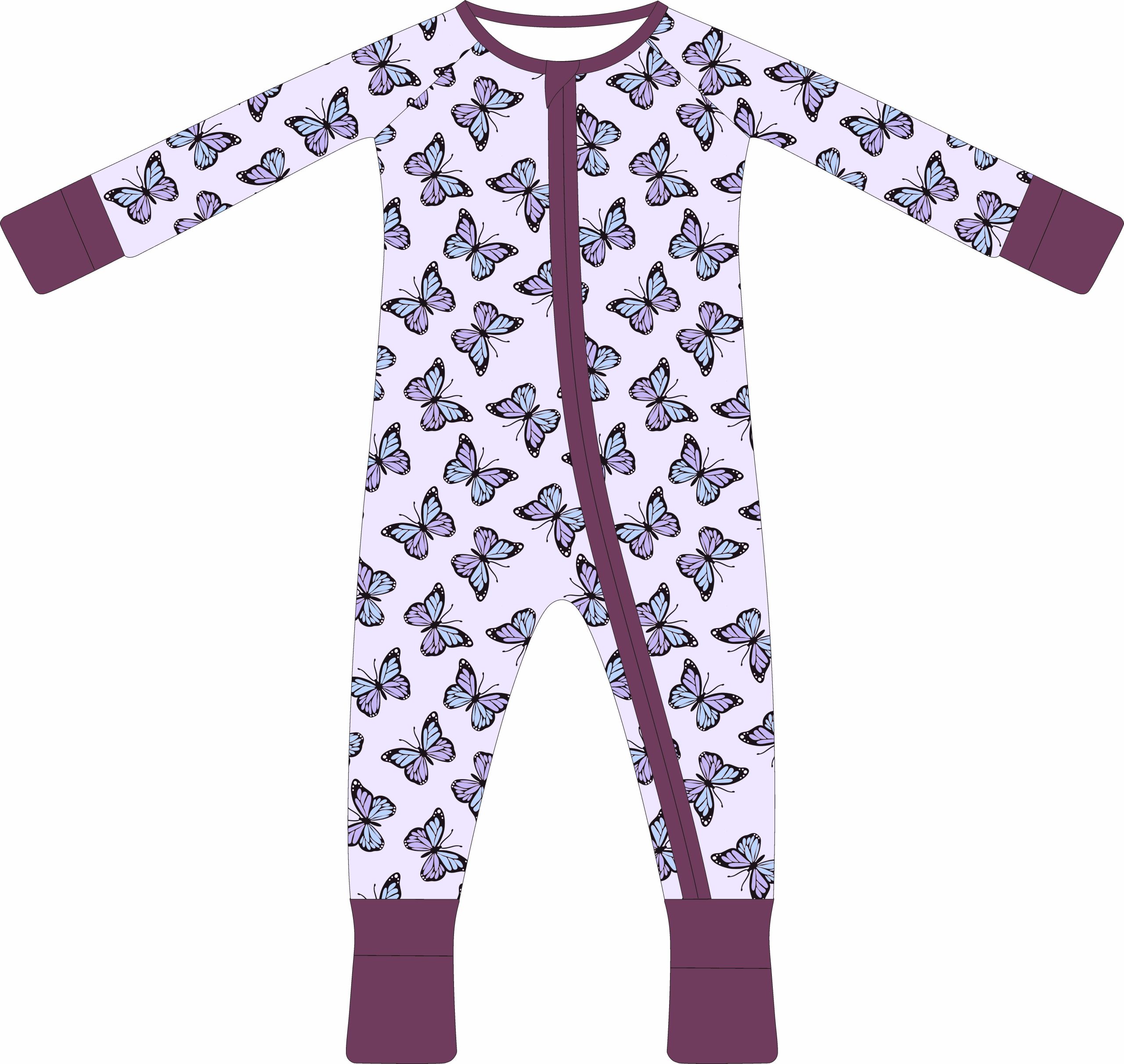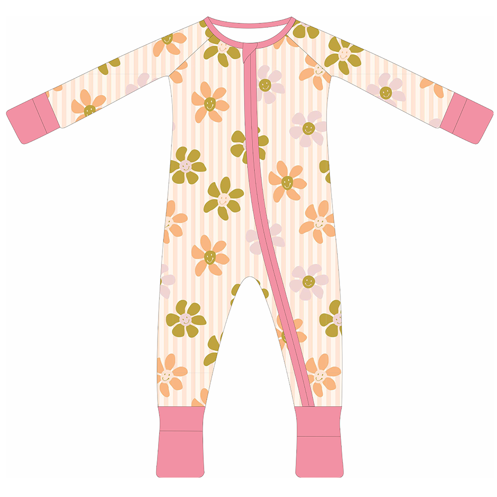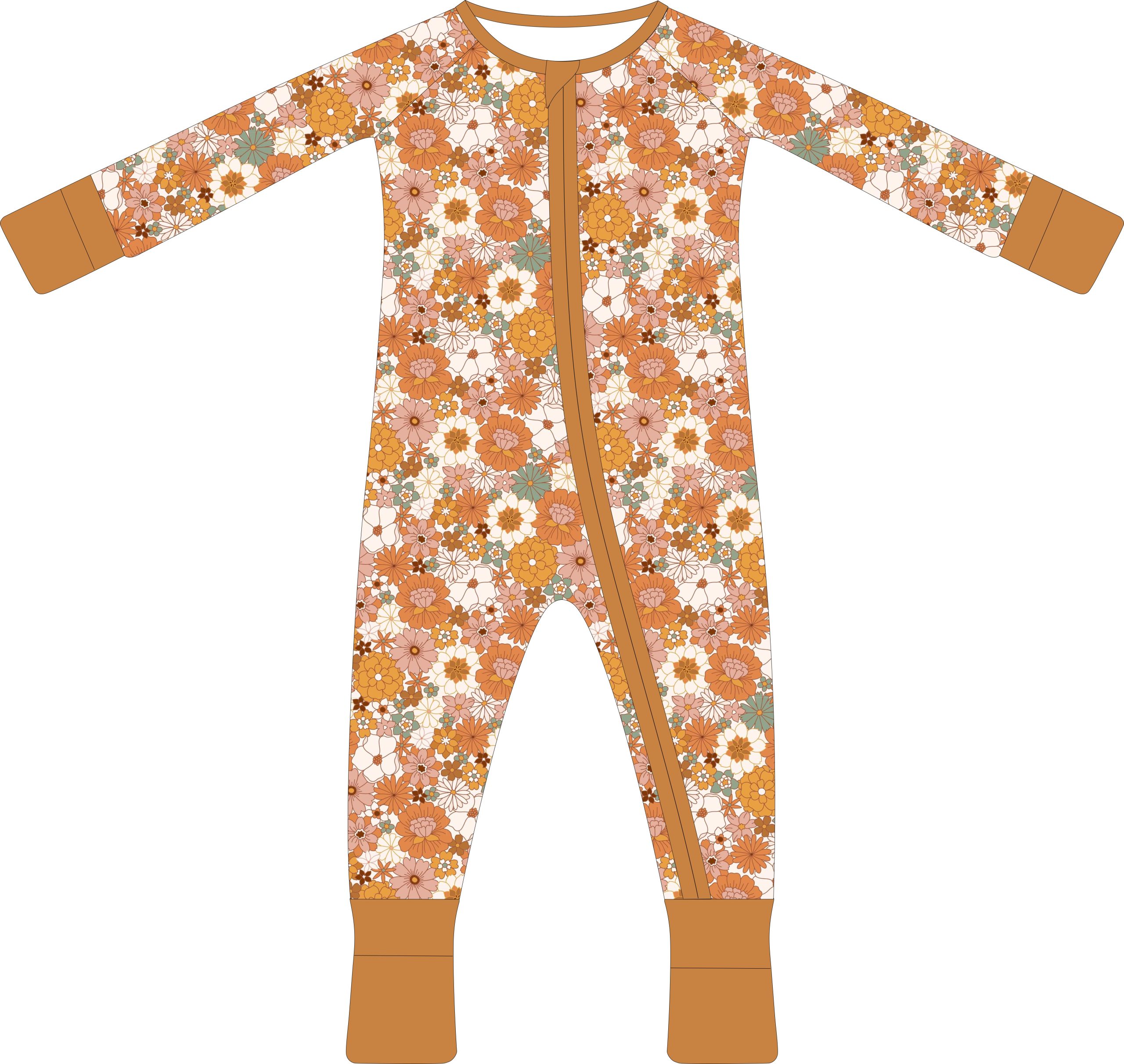 Custom Print Newborn Baby Clothes Kids Clothing Natural Fabric Long Sleeves Bamboo Footie Zipper Baby Pajamas