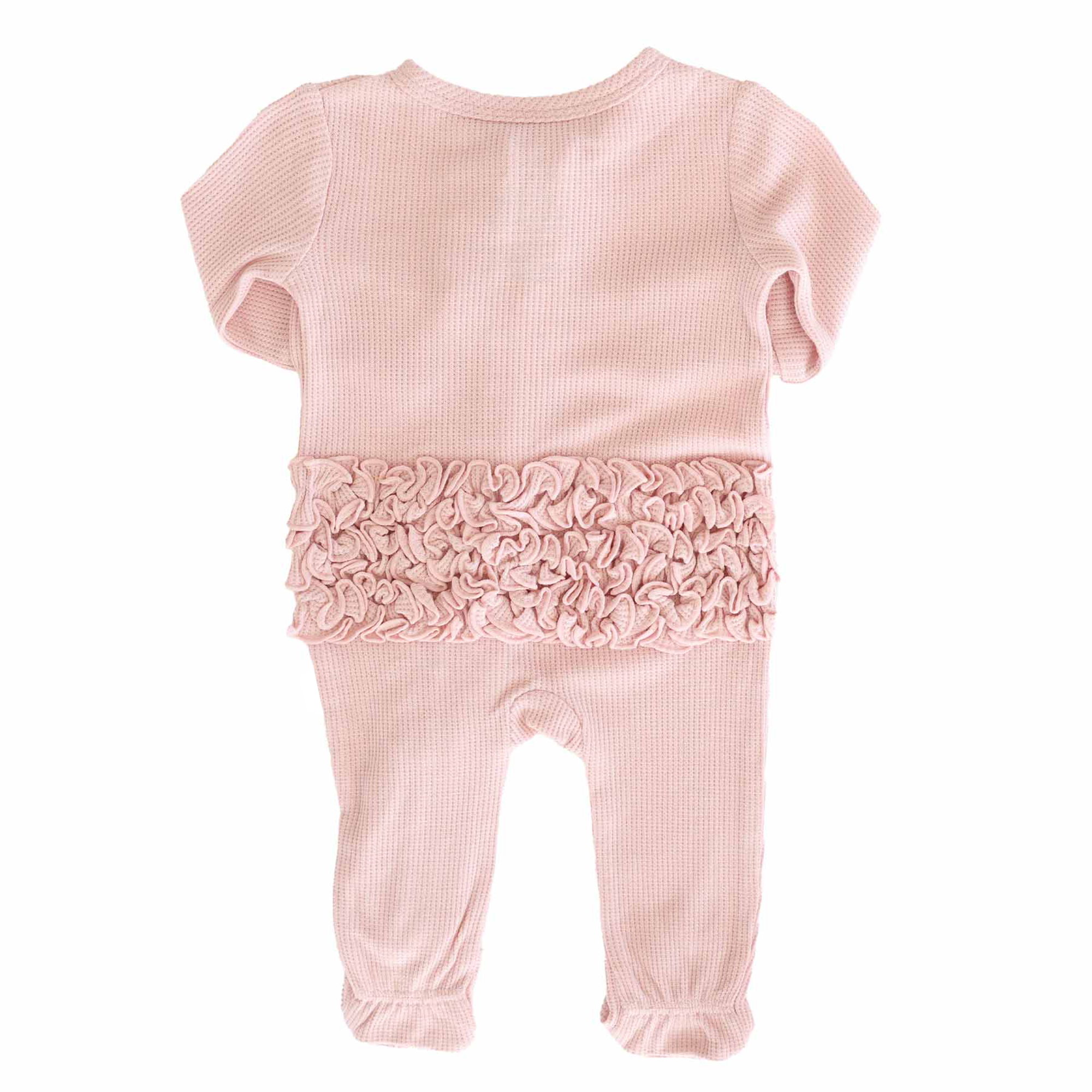 Custom Solid Ruffle Waffle Baby Romper Bodysuit Long Sleeve Two Way Zipper Knit Newborn Pajama Sleeper Infant Footie Onesie