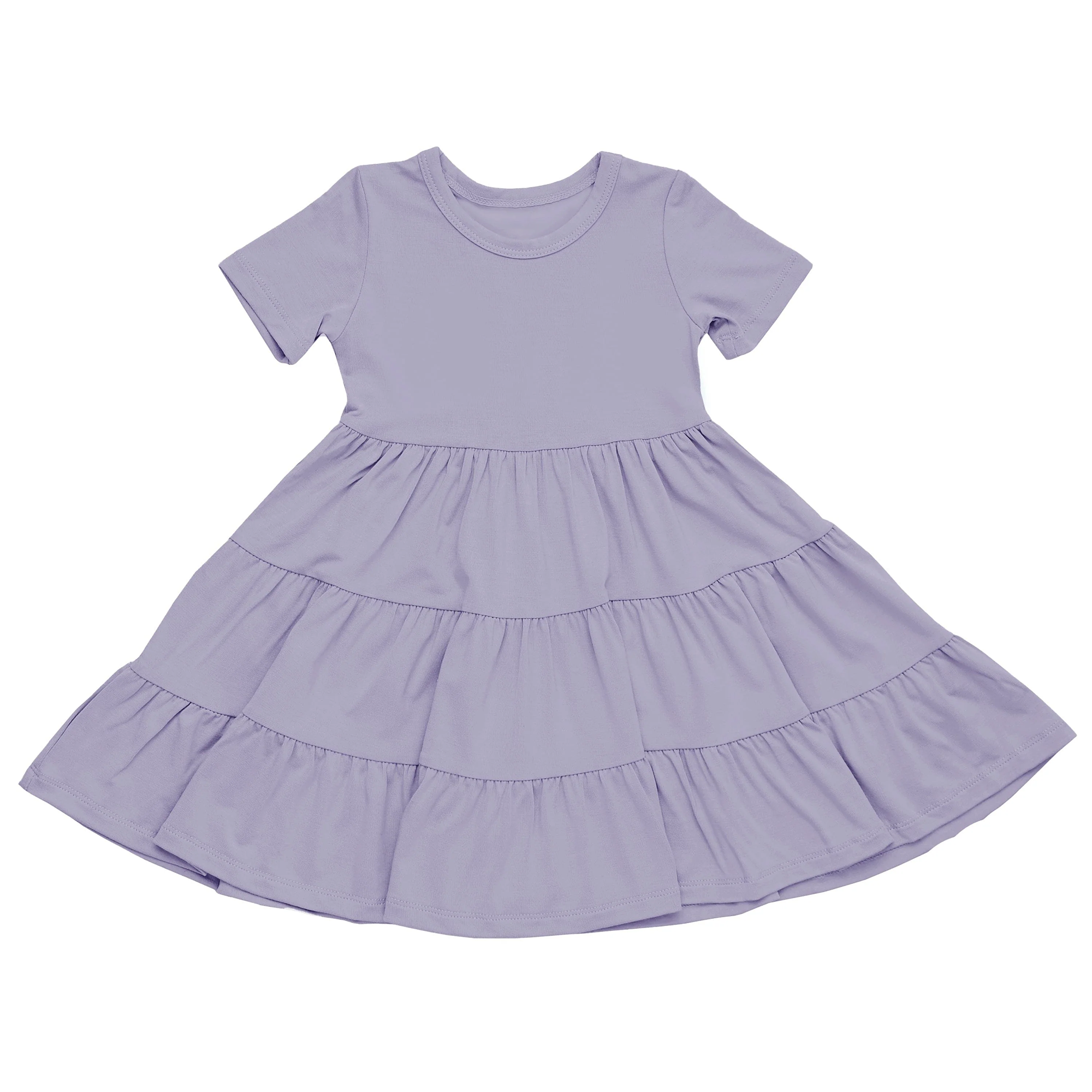 Customized Baby Girls Bamboo Spandex Twirl Dress Casual Soft Wear Short Sleeve Solid Children Tiered Dress Toddler Girls Dress