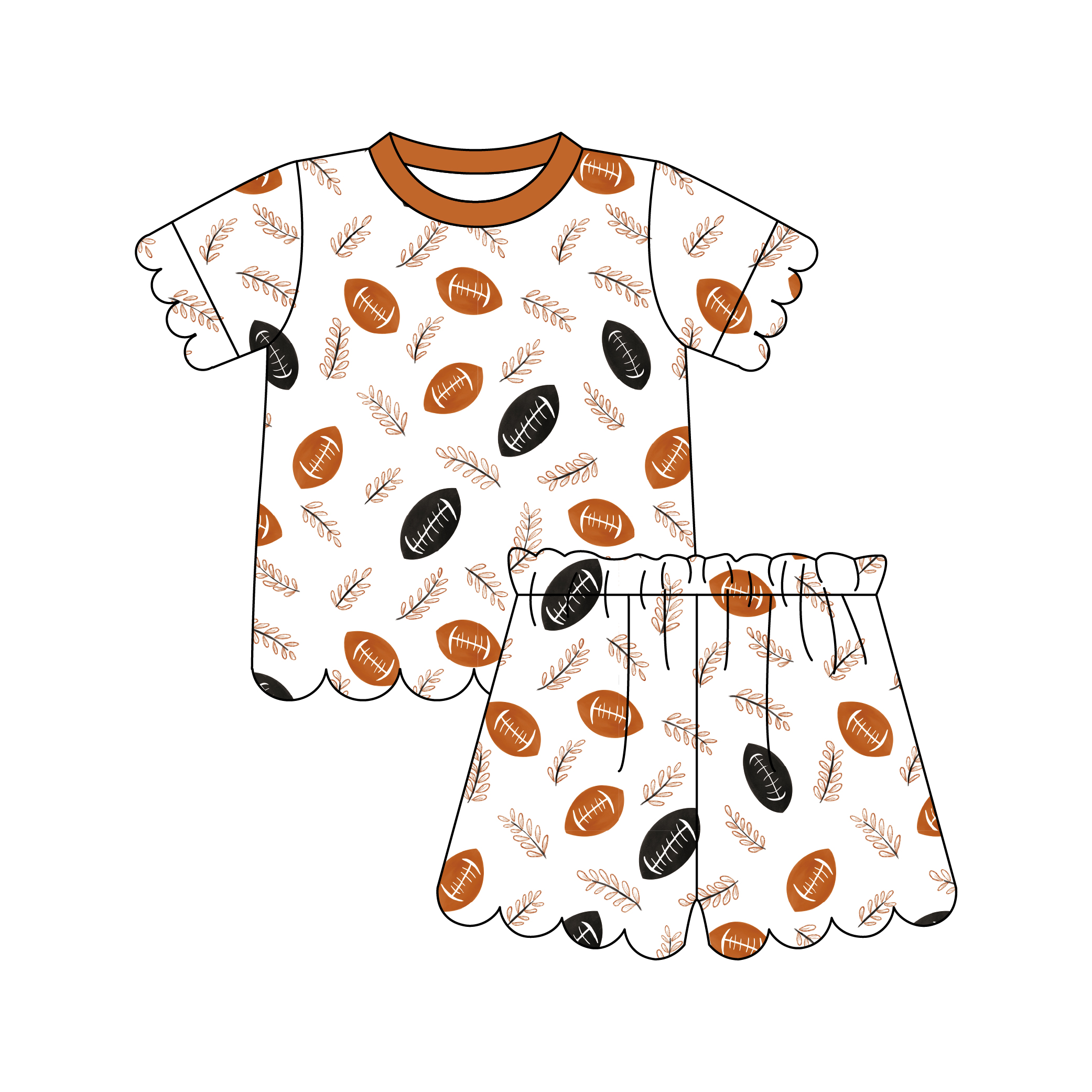Customized Bamboo Spandex Children Pijama Sets Two Pieces Short Sleeve Scalloped Hem Drawstring Short Pants Girls Clothing Sets