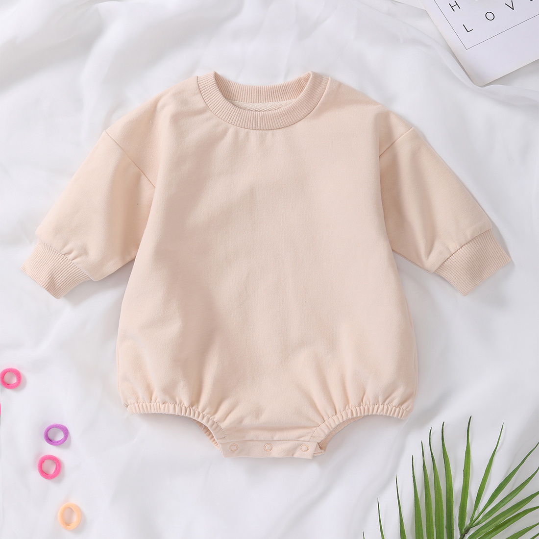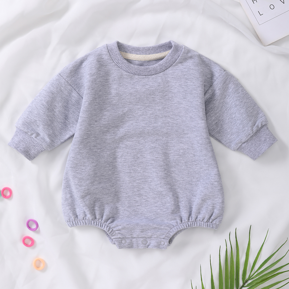 Customized Spring Long Sleeve Jumpsuit Bubble Romper O-neck Pullover One Piece Newborn Sweatshirt Rompers Bodysuit Infant Outfit