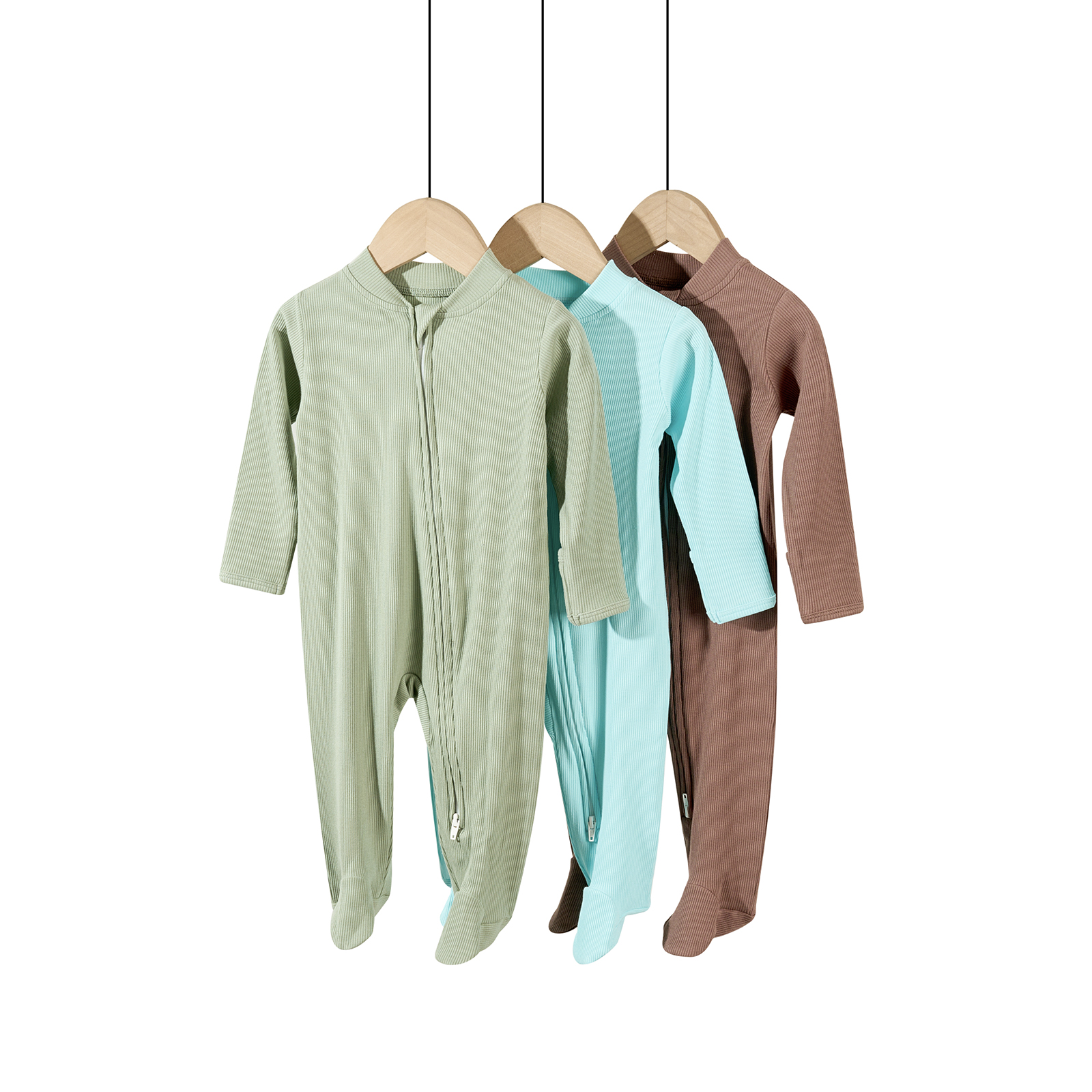 Factory Long Sleeve Solid Ribbed Baby Footie Romper Cotton Newborn Clothing Ribbed Pajamas Rib Zipper Toddler Baby Sleeper