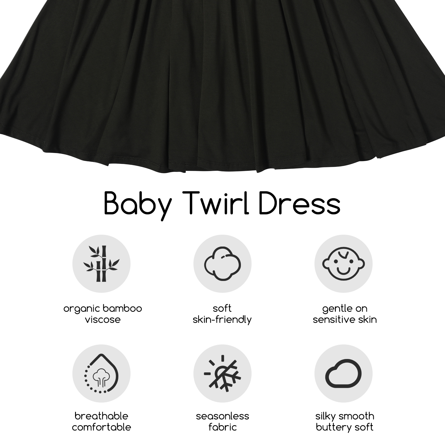 High Quality Little Kids Black Bamboo Spandex Swing Dress Long Sleeve Casual Soft Summer One Piece Baby Girls Twirl Dresses - Image 6
