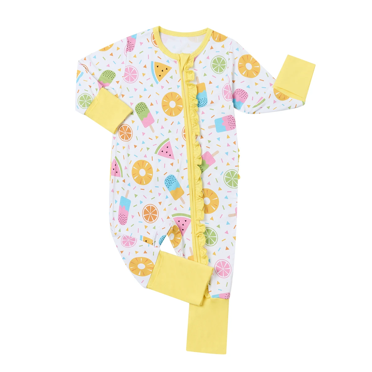High Quality Pattern Toddler Romper Sleepwear Two Way Zipper Butts Ruffle Footie Onesie Jumpsuit Long Sleeve Pjs Baby Bodysuit