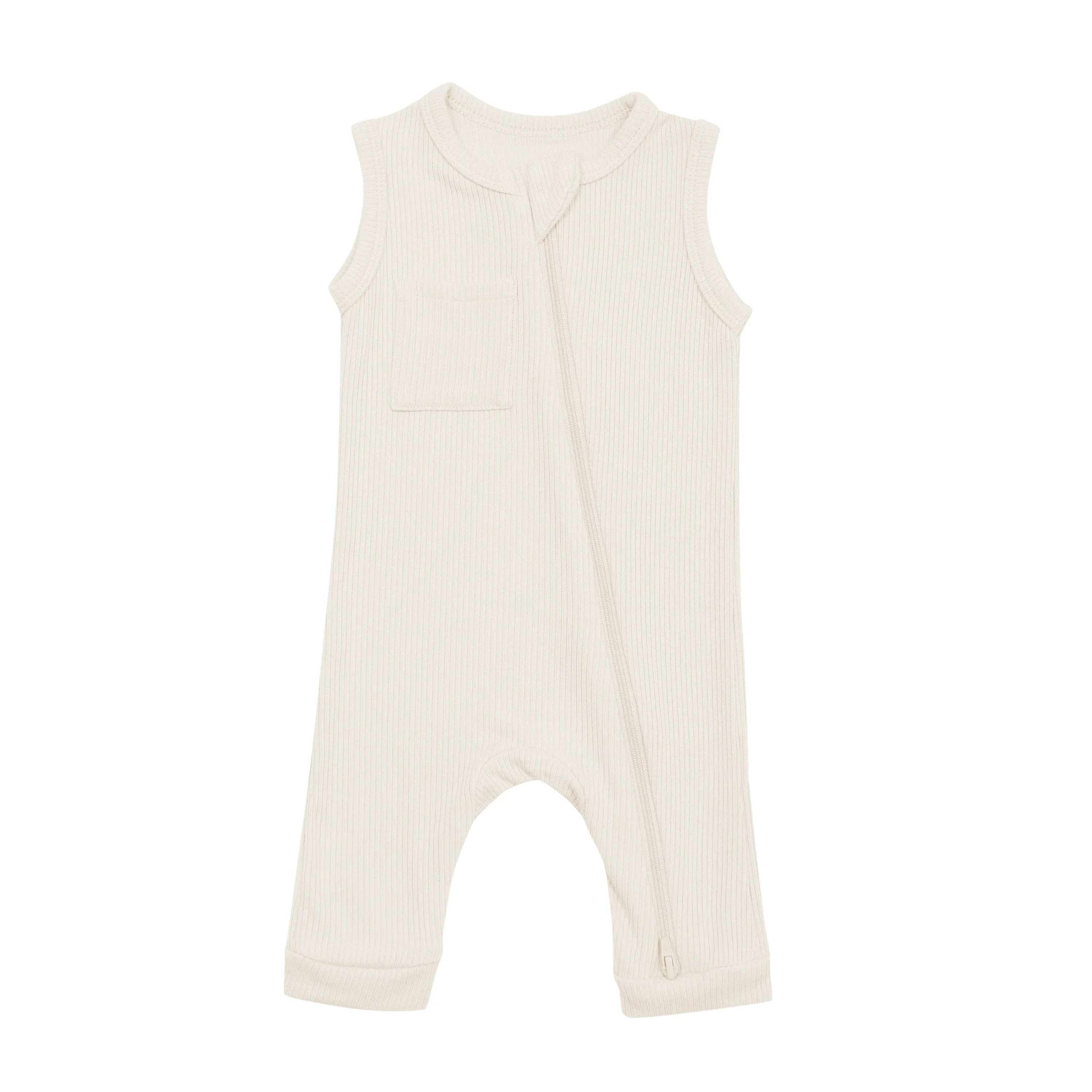 Hot Sale Baby Ribbed Romper Bodysuit Pajama Two Way Zipper Solid Sleeveless Infant Unisex Jumpsuit Sleepwear Newborn Onesie