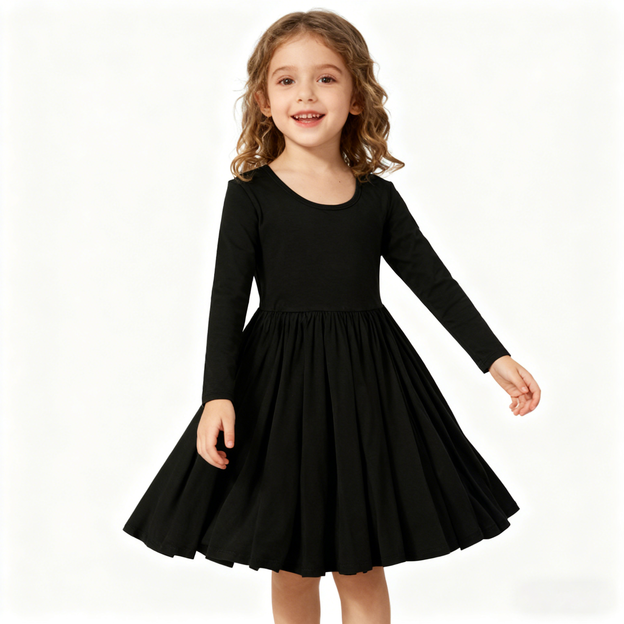 Hot Selling Toddler Girls 95% Bamboo 5% Spandex Midi Twirl Dresses Long Sleeve Black Casual Breathable Children Girls Spin Dress - Image 6