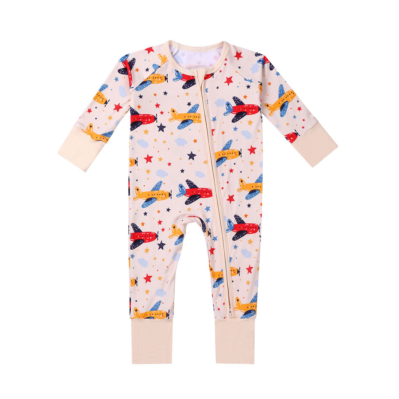 Custom Printed Baby Kid Bamboo Spandex Double Zipper Pajamas Sleepers Children Toddler Sleepwear Rompers Onesie Clothes