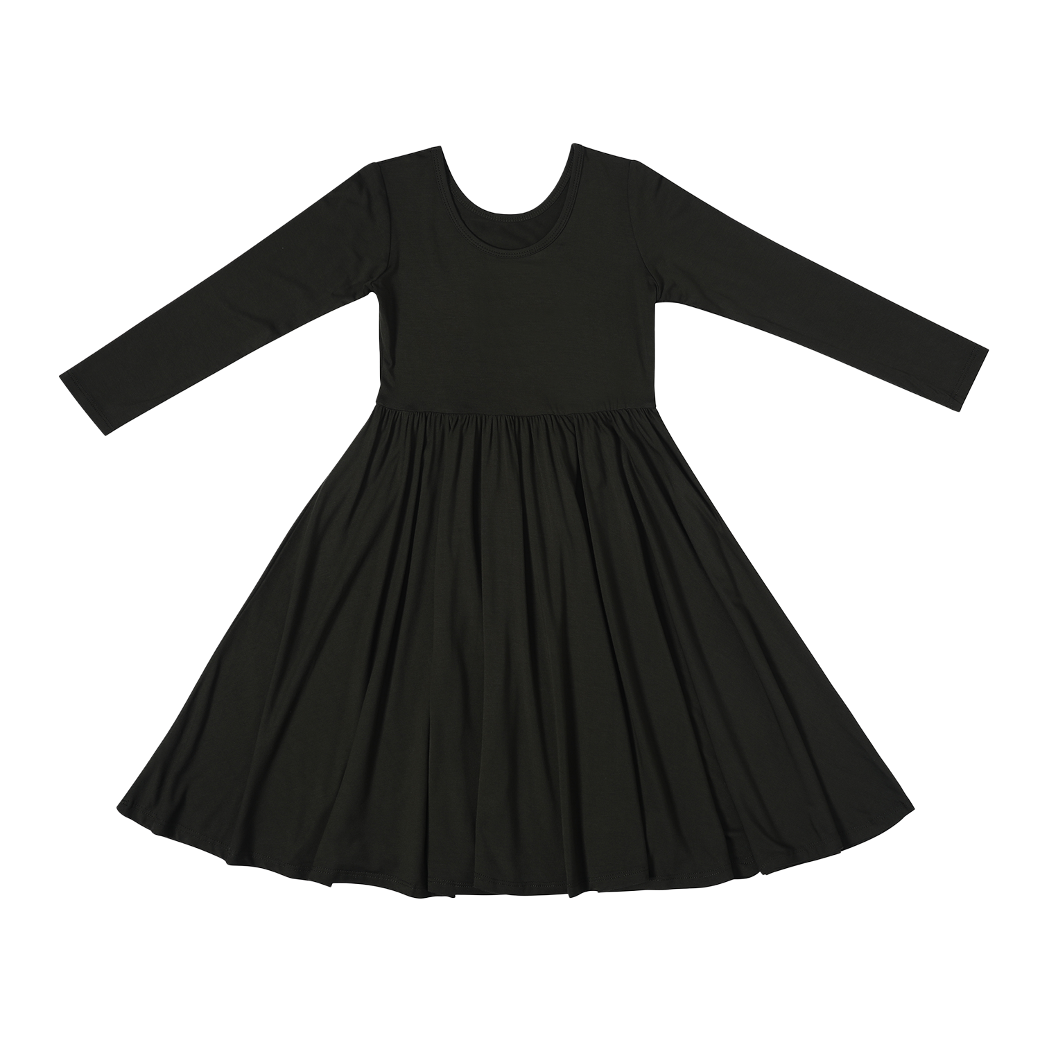 OEM Baby Girls Organic Bamboo Black Long Sleeve Floral Twirl Ruffle Dress Children Casual Long Sleeve One Piece Toddler Dresses