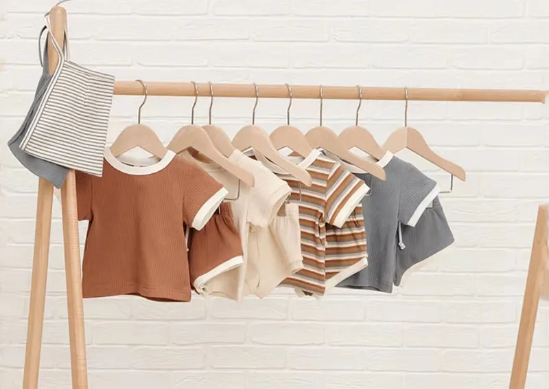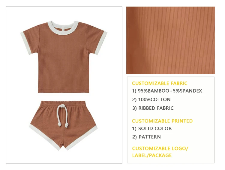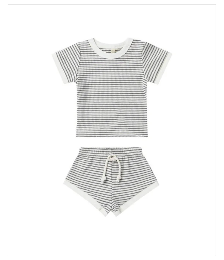 Outdoor Cotton Kids Summer Short Sleeve T-shirts and Shorts Two Piece Clothing Set Infant Cotton Clothes Casual Baby Ribbed Set