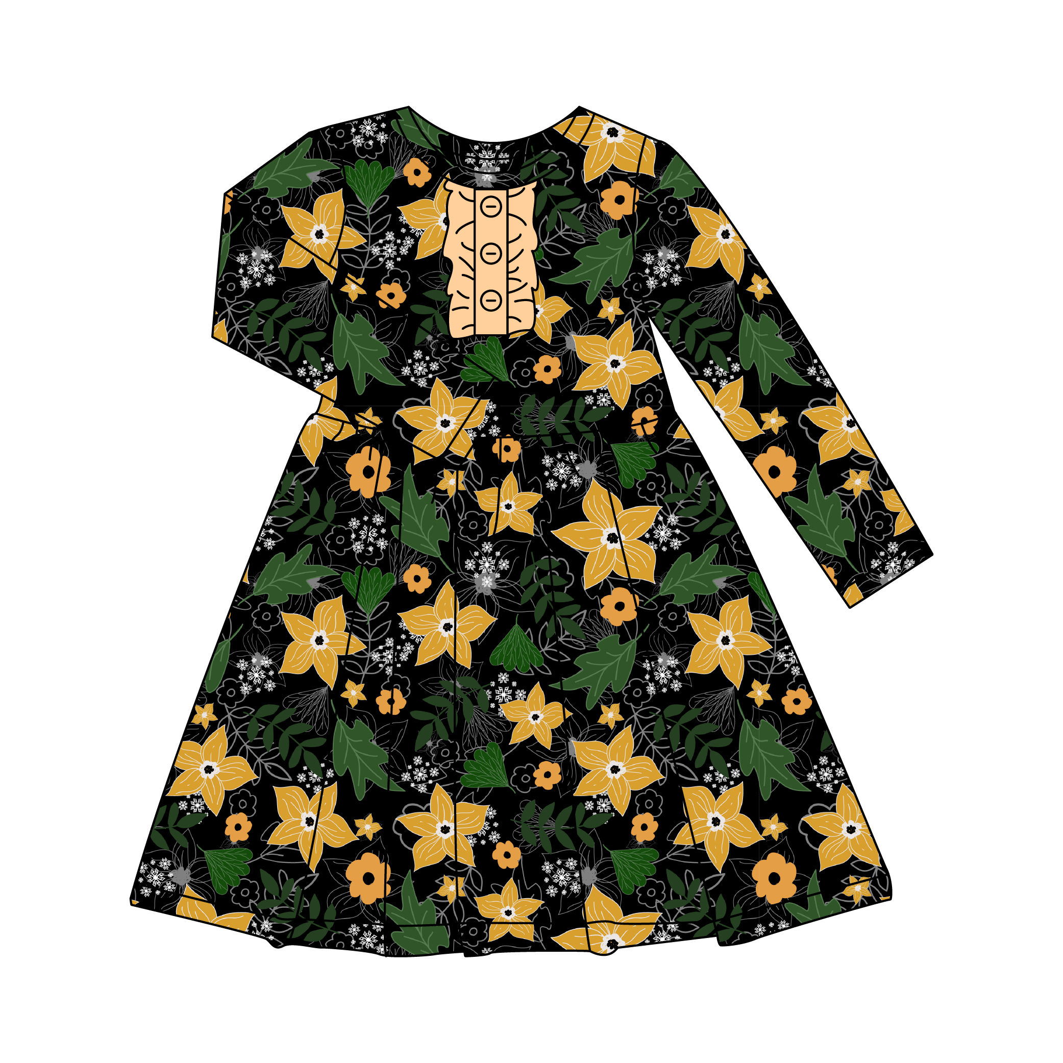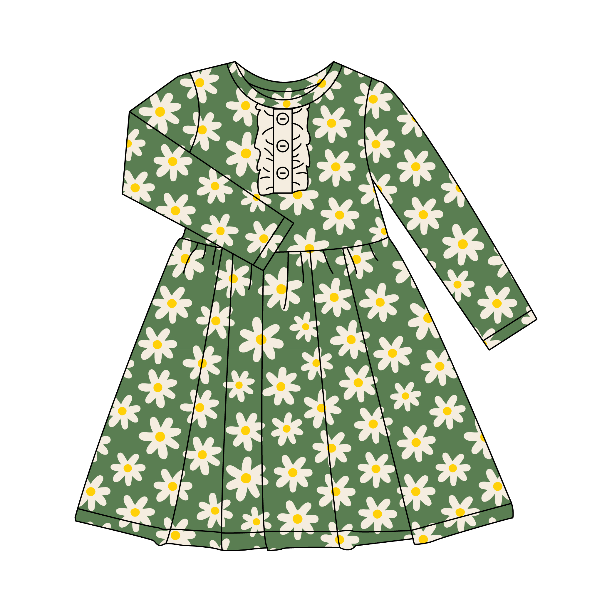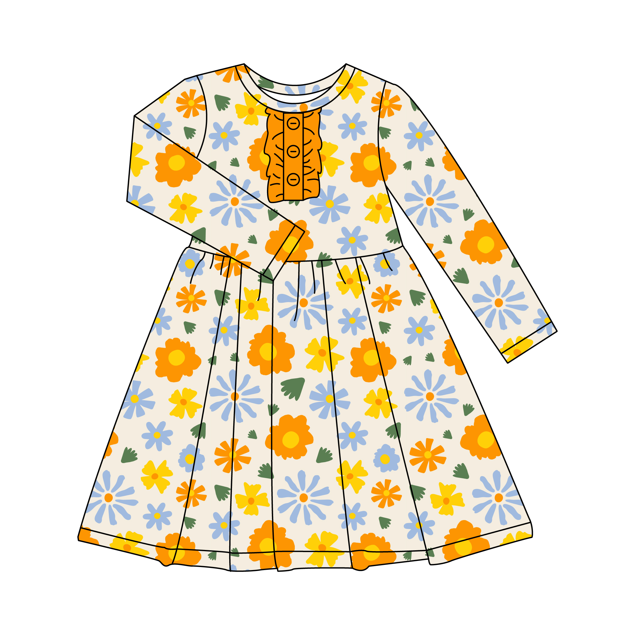Printing Pattern Organic Bamboo Baby Girls Dress Long Sleeve Ruffle Button Sister Casual Skirt Clothes Flower Girls Dresses