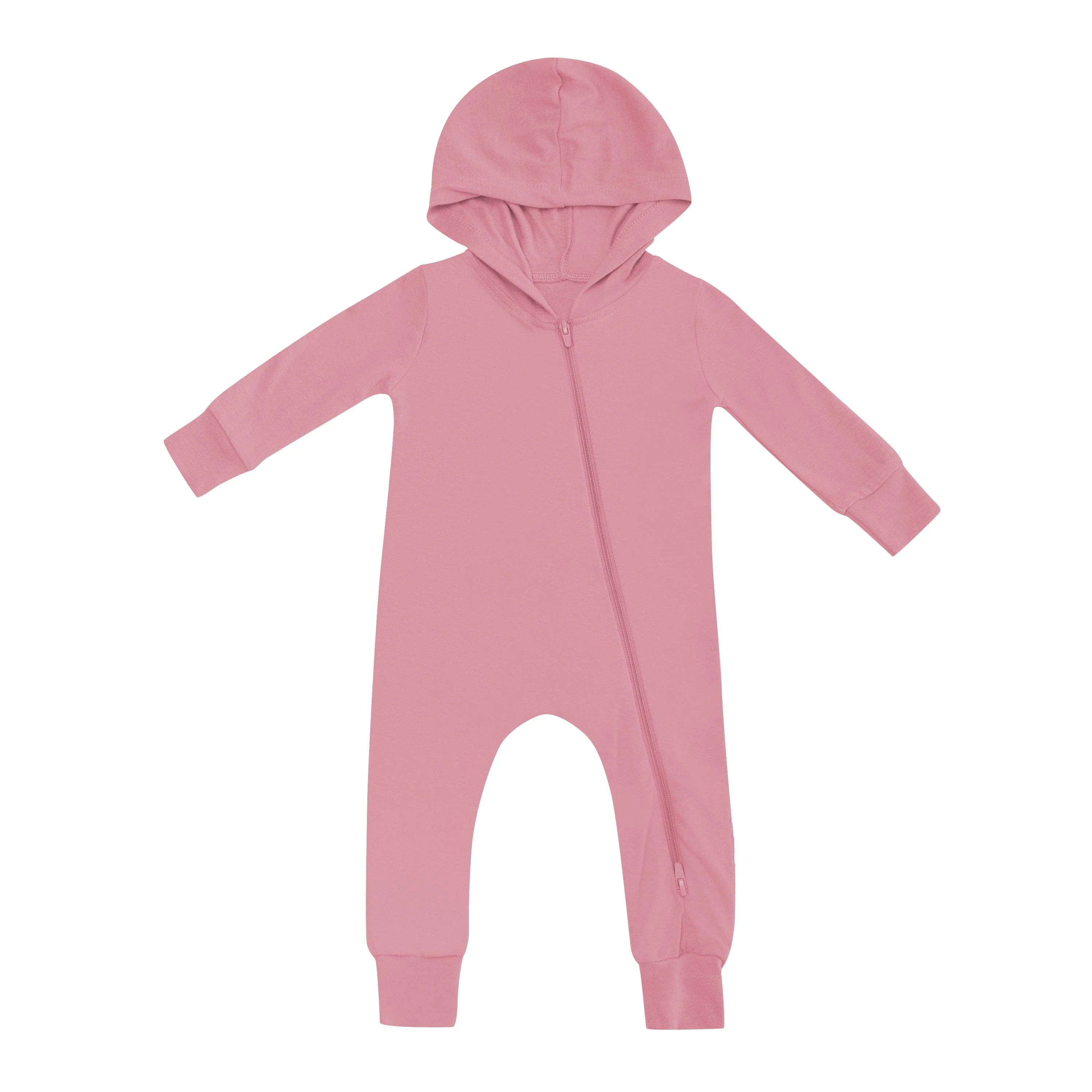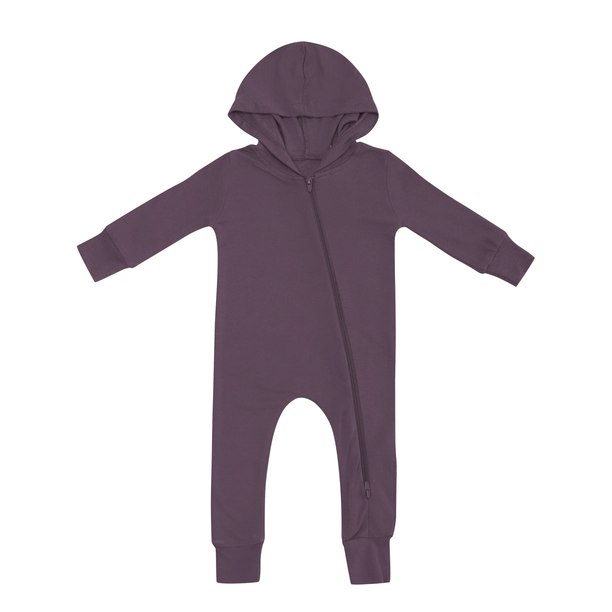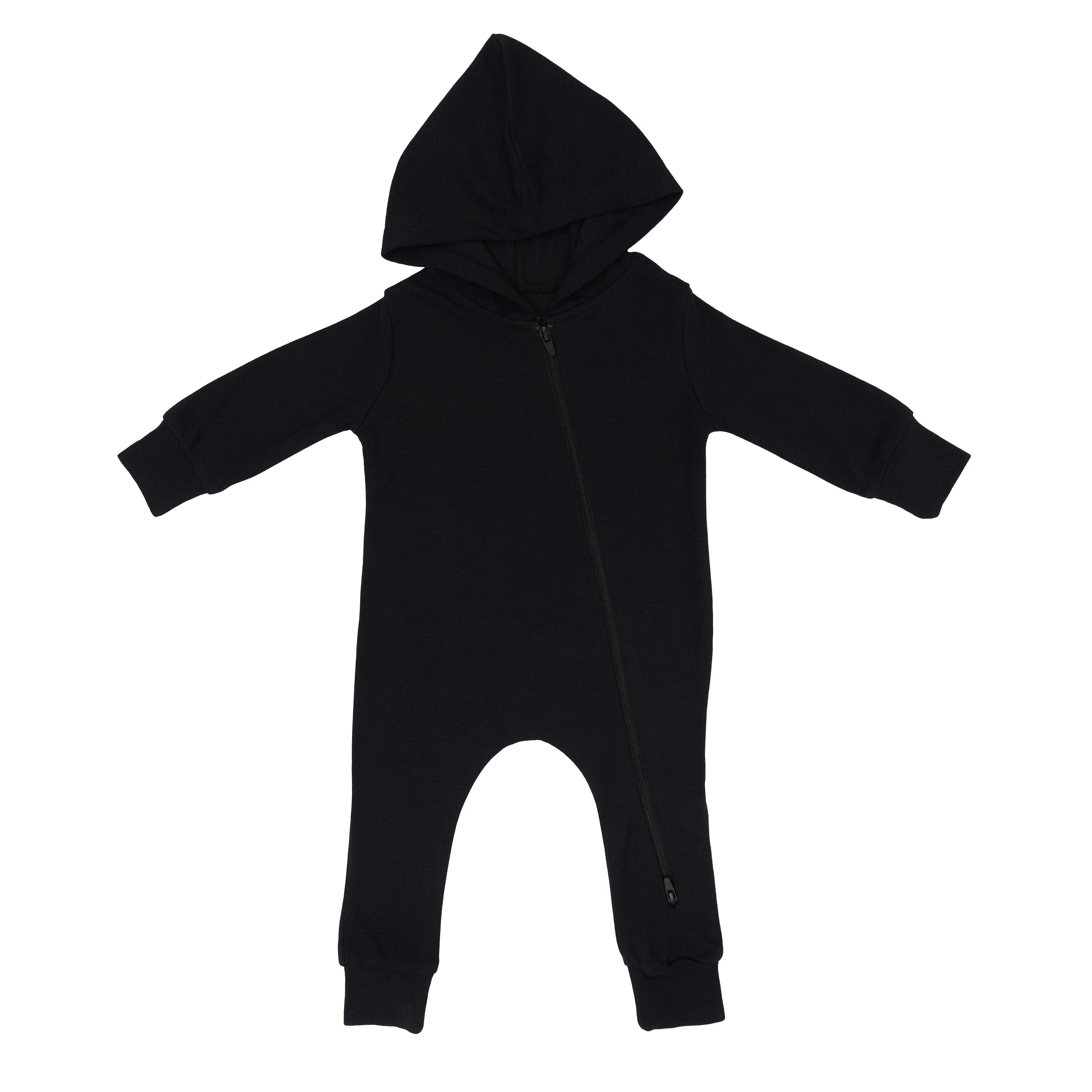 Wholesale 95% Bamboo 5% Spandex Solid Baby Hoodie Rompers Knit Long Sleeve Two Way Zipper Children Hooded Jumpsuit Infant Onesie