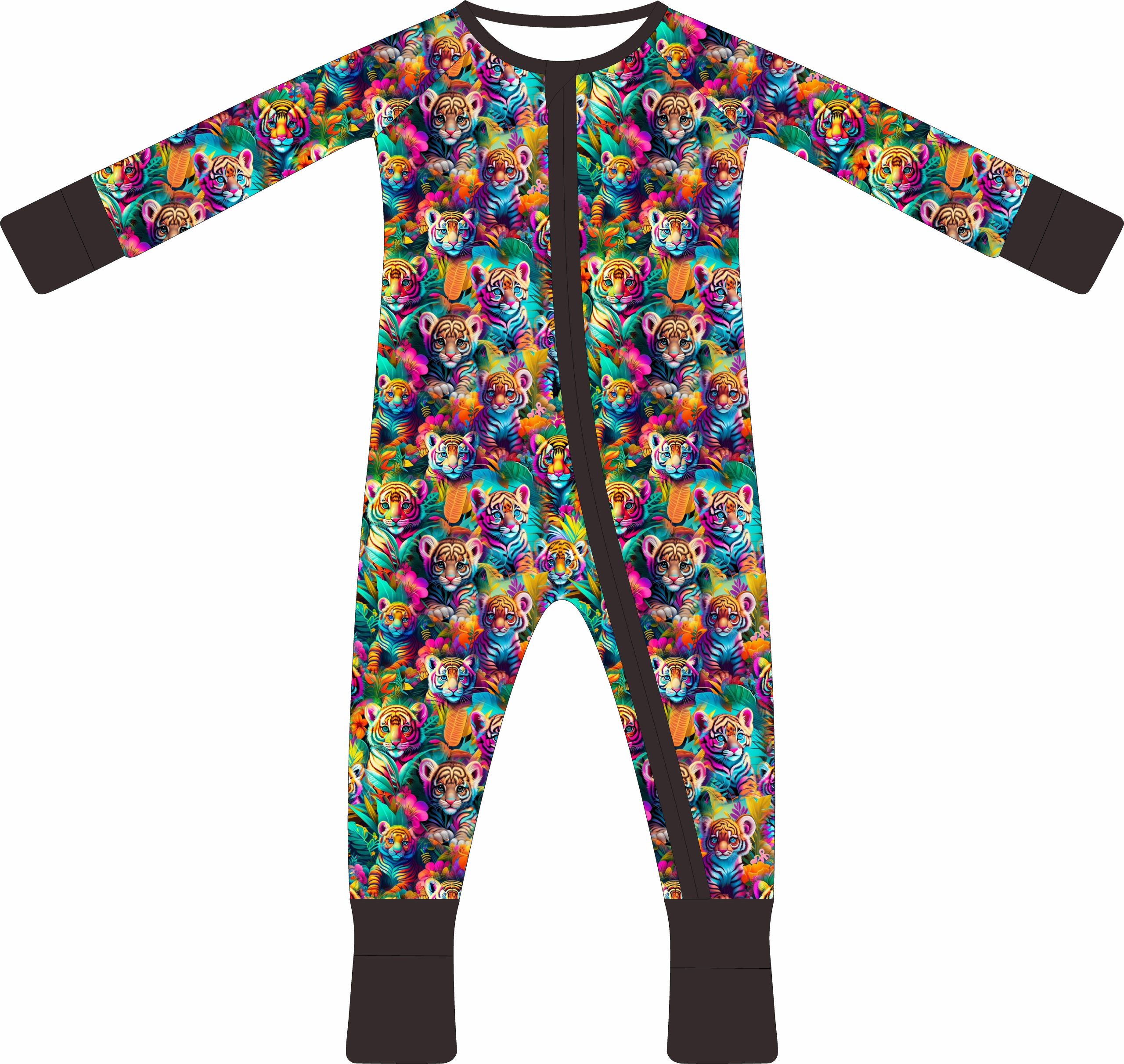 Wholesale Custom Reactive Print Organic Bamboo Clothing Zip Baby Rompers Baby Rompers