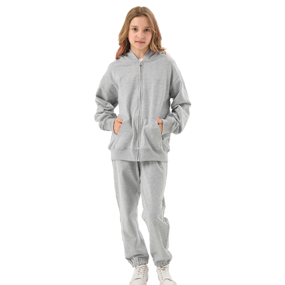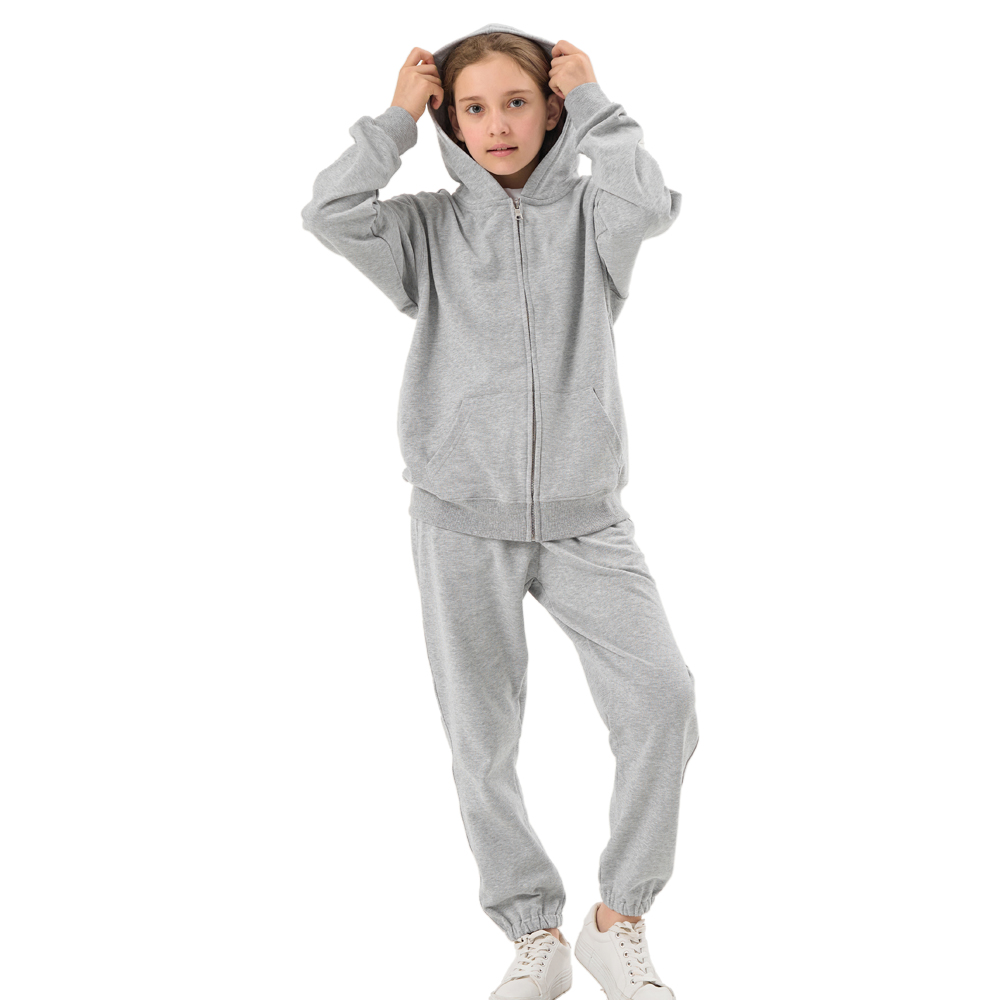 Wholesale Full Zip Hoodies Puls Size French Terry 100% Zip up Sweatshirts Kids Casual Tracksuit Hoodie Set Children Jogger Set